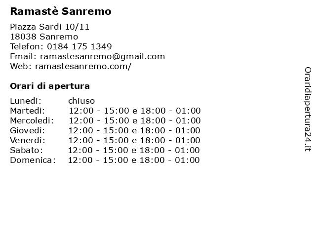 Martedi | 12:00-15:00 e 18:00-01:00 |