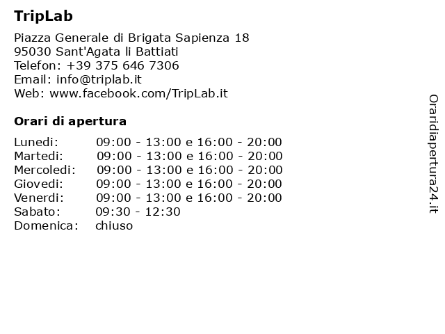 | Lunedi | 09:00-13:00 e 16:00-20:00 |