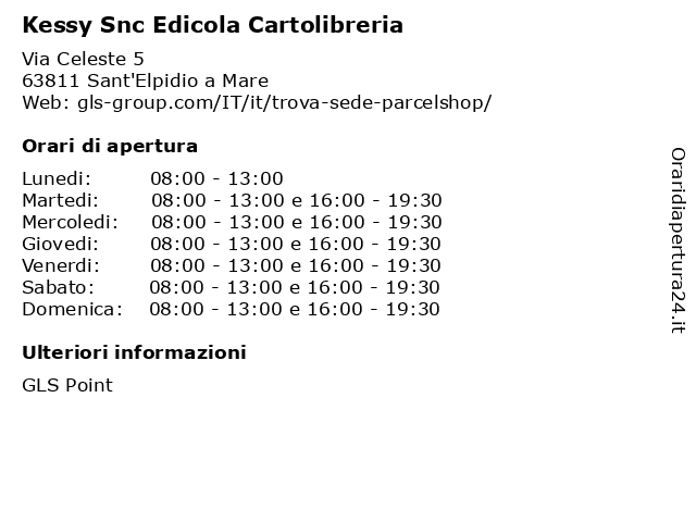 | Sabato | 08:00-13:00 e 16:00-19:30 |