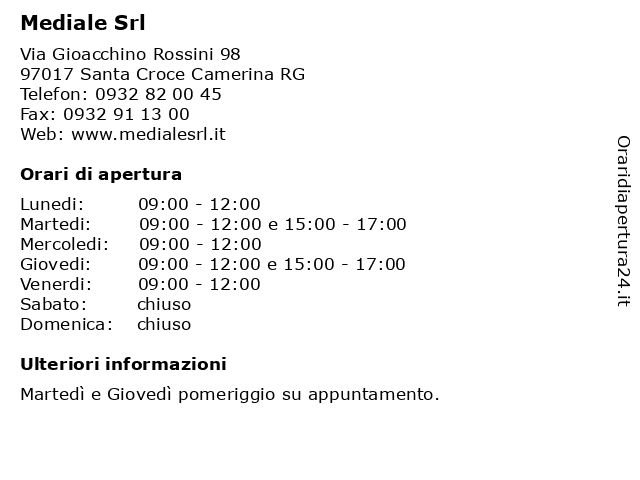 Martedi | 09:00-12:00 e 15:00-17:00 |