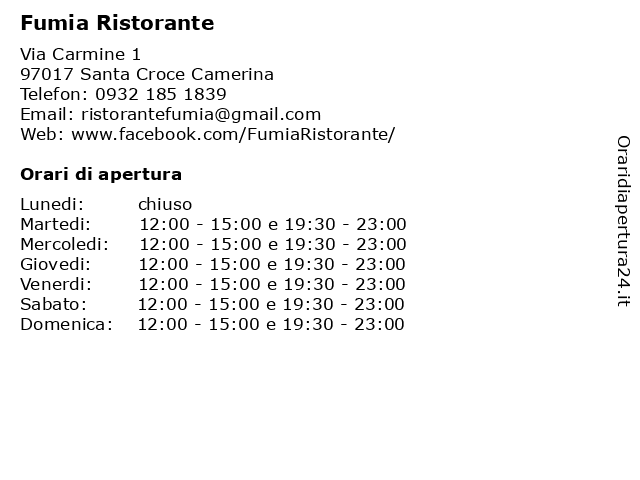 Martedi | 12:00-15:00 e 19:30-23:00 |