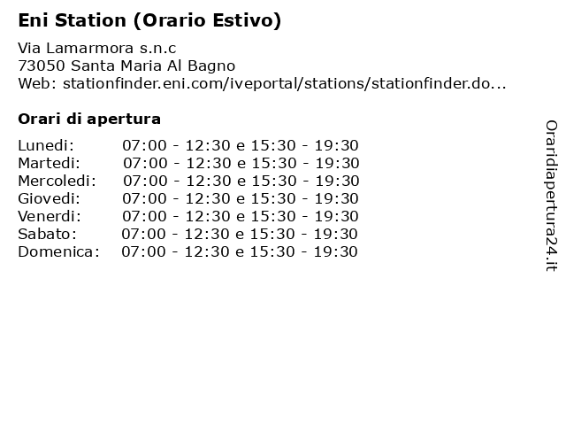 | Lunedi | 07:00-12:30 e 15:30-19:30 |