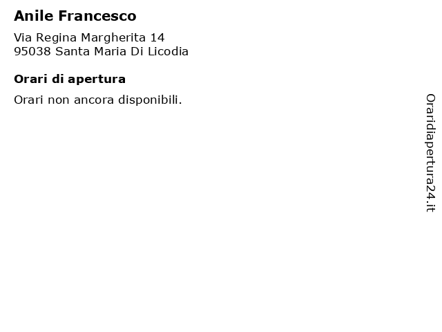1 Fra.Ma. Di Rizzo Francesco & c. Sas (distanza: 0,10 km) Via Vittorio Emanuele Sn, 95038 Santa Maria Di Licodia benzina, distributori, francesco, rizzo 2 Calanna Francesco (distanza: 0,96 km) Via Aldo Moro 69, 95038 Santa Maria Di Licodia bar, birrerie, calanna, francesco, paninoteche 3 Arte Antica Di Romano Francesco & c. Snc (distanza: 3,12 km) Contrada Rinazzi s. n., 95033 Biancavilla antica, antiq, art, arte, francesco, mano, rivend, romano, seconda 4 Ortofrutta La Trinacria Di Lavenia Francesco (distanza: 3,12 km) Contrada Montalto Sn, 95033 Biancavilla comm, dett, francesco, frutta, lavenia, ortofrutta, trinacria, verdura 5 Gi. Asi Srl (distanza: 3,13 km) Via Sacco e Vanzetti 39, 95033 Biancavilla asi, porta, telefoniche, vendite 6 Dott. Francesco Cavallaro (distanza: 3,69 km) Contrada Croce al Vallone s.n.c., 95100 Biancavilla (CT) cavallaro, cure mediche, dott., dottore, francesco, medico, prescrizioni farmaci, sanità, visite mediche |