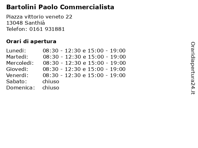 | Martedi | 08:30-12:30 e 15:00-19:00 |