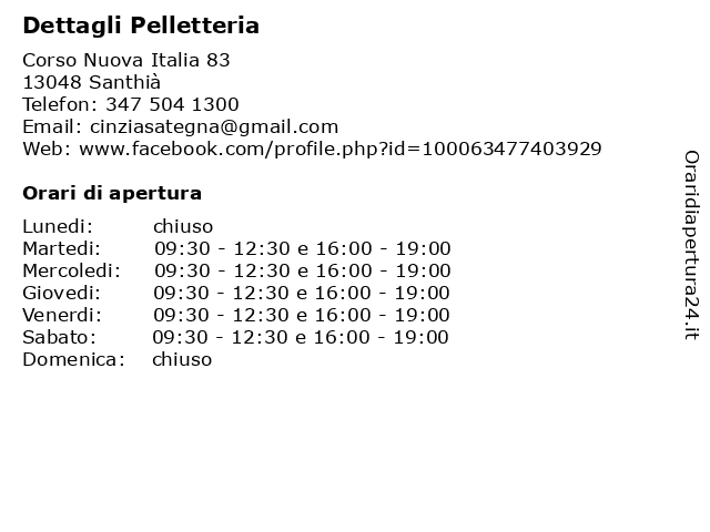 | Sabato | 09:30-12:30 e 16:00-19:00 |