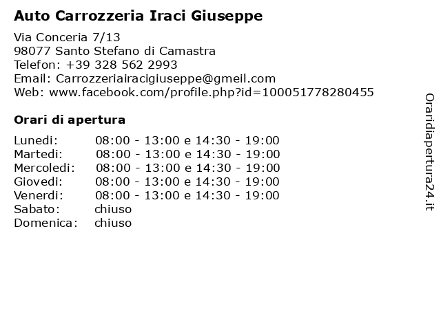 Lunedi | 08:00-13:00 e 14:30-19:00 |