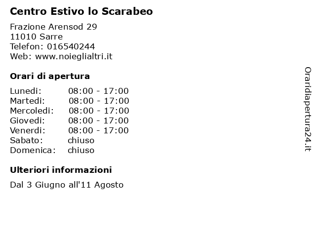 | Venerdi | 08:00-17:00 |