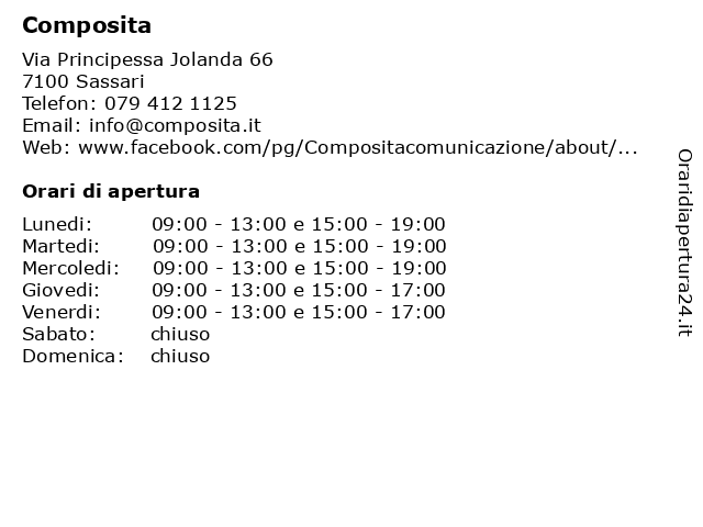 | Lunedi | 09:00-13:00 e 15:00-19:00 |