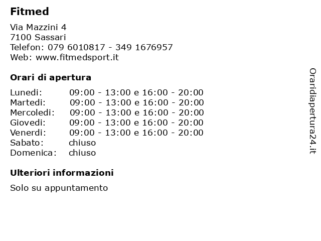 | Lunedi | 09:00-13:00 e 16:00-20:00 |
