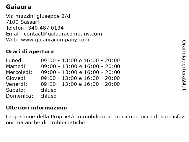 | Lunedi | 09:00-13:00 e 16:00-20:00 |