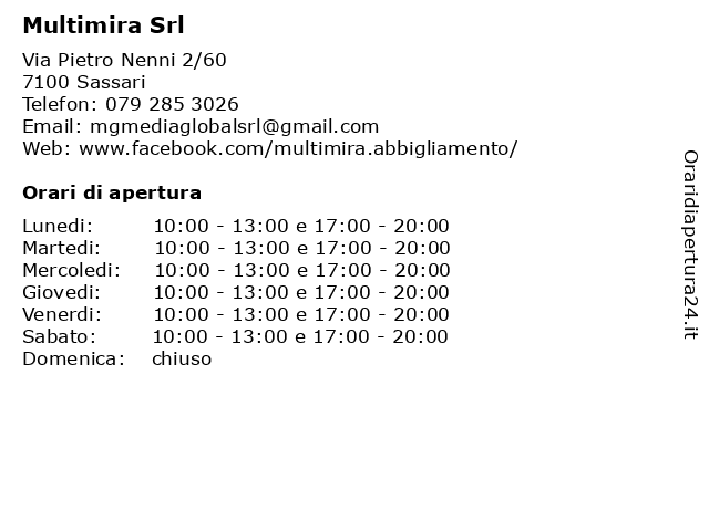 Lunedi | 10:00-13:00 e 17:00-20:00 |