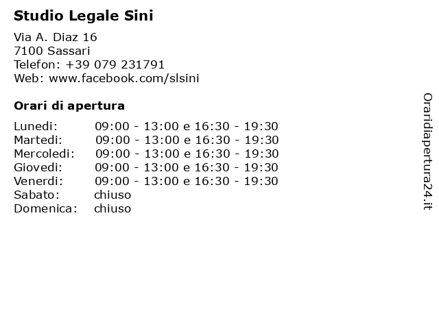 | Lunedi | 09:00-13:00 e 16:30-19:30 |