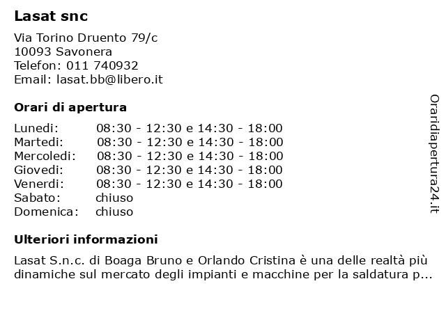 | Lunedi | 08:30-12:30 e 14:30-18:00 |