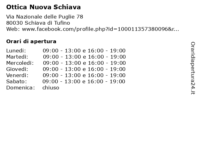 | Sabato | 09:00-13:00 e 16:00-19:00 |