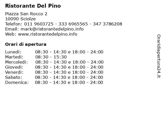 Domenica | 08:30-14:30 e 18:00-24:00 |