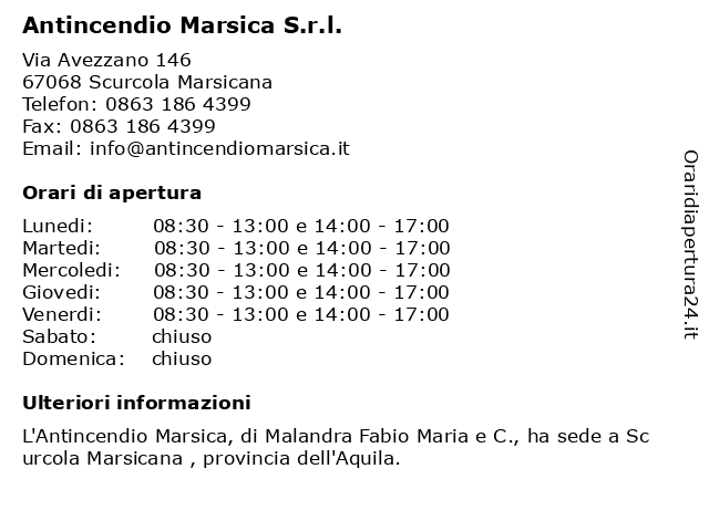 | Lunedi | 08:30-13:00 e 14:00-17:00 |