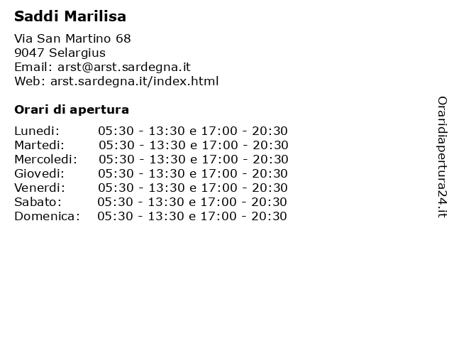 | Lunedi | 05:30-13:30 e 17:00-20:30 |