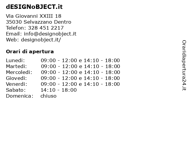 | Venerdi | 09:00-12:00 e 14:10-18:00 |