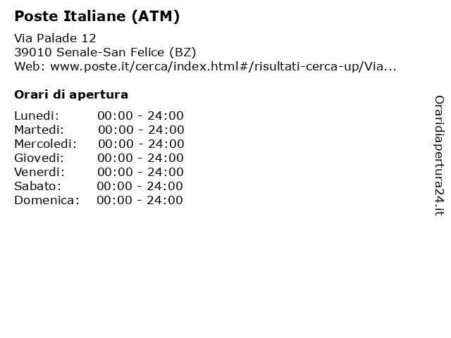 1 Poste Italiane (ATM) (distanza: 5,79 km) Piazza Don Stefenelli 3, 38013 Borgo d'Anaunia (TN) (atm), atm poste, italiane, postamat, poste 2 Poste Italiane (ATM) (distanza: 8,60 km) Via Di Santo Stefano 21, 38028 Novella (TN) (atm), atm, italiane, posta, postamat, poste 3 Poste Italiane (ATM) (distanza: 10,77 km) Via Madonna del Riposo 1/A, 39057 Appiano sulla Strada del Vino (BZ) (atm), atm poste, italiane, postamat, poste 4 Poste Italiane (ATM) (distanza: 13,79 km) Via Madonna del Suffragio 5, 39011 Lana (atm), atm poste, italiane, postamat, poste 5 Poste Italiane (ATM) (distanza: 15,01 km) Via Sorrento 12, 39100 Bolzano (atm), atm poste, italiane, postamat, poste 6 Poste Italiane (ATM) (distanza: 15,84 km) Via San Giacomo 49/c, 39055 Laives (BZ) (atm), atm, italiane, posta, postamat, poste |