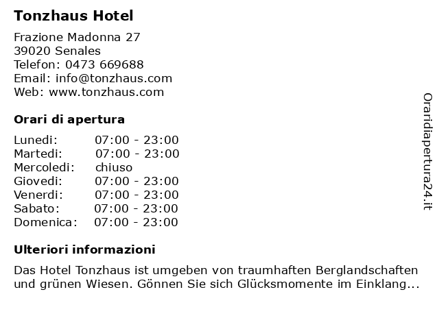 | Lunedi | 07:00-23:00 |