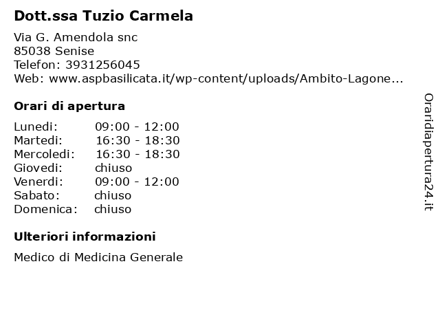 1 Avvocato Iannotta Filomena Carmela (distanza: 0,05 km) Via Nicola Melfi s.n.c, 85038 Senise (PZ) appuntamenti, avvocati, avvocato, carmela, concetta, difensori, filomena, iannotta, leggi 2 Dott. Tuzio Rocco (distanza: 0,34 km) Viale Giorgio Amendola snc, 85038 Senise ambulatori, dott., medici, medicina, rocco, sanità, tuzio, visite mediche 3 Azienda Agricola Vittoria di Tuzio Antonio (distanza: 0,34 km) Contrada Pantanello Snc, 85038 Senise agr., agricola, antonio, az., azienda, cliente, di, fabbrica, tuzio, vendita, vittoria 4 Studio Dentistico Dott. Rocco Tuzio (distanza: 0,37 km) Via Don Egidio Guerriero 10, 85038 Senise ambulatorio, assistenza, cure mediche, dentistico, dott., rocco, sanità, servizi ai cittadini, studio, tuzio 5 Studio Tecnico Tuzio (distanza: 0,41 km) Viale della repubblica 33, 85038 Senise agrimensore, studio, tecnico, tuzio 6 Tuzio Rocco (distanza: 0,53 km) Corso Vittorio Emanuele, 85038 Senise bar, birrerie, paninoteche, rocco, tuzio |