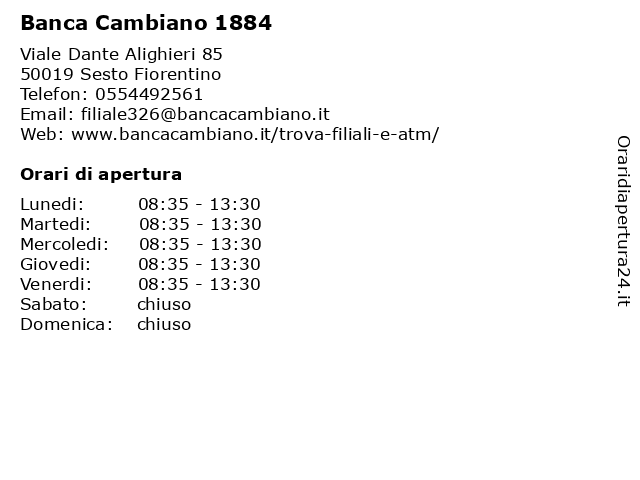 1 Banca di Credito Cooperativo di Cambiano (distanza: 0,67 km) Via Gramsci 34, 50133 Firenze (FI) banca, cambiano, cooperativo, credito, di, finanziare 2 Banca Cambiano 1884 (distanza: 6,74 km) Viale F. Talenti 91, 50142 Firenze (FI) 1884, banca, cambiano, cooperativo, credito, finanziare 3 Banca Cambiano 1884 (distanza: 8,33 km) Piazza L. Nobili 9/R, 50131 Firenze (FI) 1884, banca, cambiano, cooperativo, credito, finanziare 4 Banca Cambiano 1884 (distanza: 8,41 km) Via Maggio 84/R, 50125 Firenze (FI) 1884, banca, cambiano, conto corrente, cooperativo, credito, finanziamenti, mutuo, prestiti, risparmio 5 Banca Cambiano 1884 (distanza: 8,69 km) Piazza Palmiro Togliatti 23, 50018 Scandicci (FI) 1884, banca, cambiano, cooperativo, credito, finanziare 6 Banca di Credito Cooperativo di Cambiano (distanza: 10,03 km) Via Aretina 153 C/D/E, 50136 Firenze (FI) banca, cambiano, cooperativo, credito, di, finanziare |