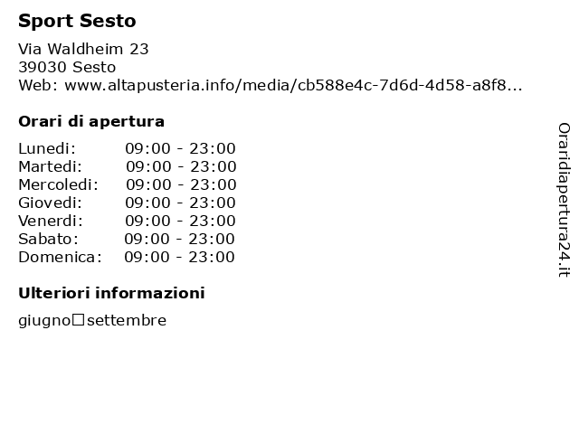 1 Bar Sport Sexten (distanza: 0,16 km) Via Waldheim 24, 39030 Sesto bar, bere, caffetteria, locale, mangiare, ristorante, sexten, sport, stuzzicheria 2 Scuola di Alpinismo Sesto Tre Cime (distanza: 0,56 km) Via Dolomitenstraße 45, 39030 Sesto, Trentino-Alto Adige alpinismo, cime, di, salute, scuola, sesto, sport, tre 3 Noleggio bici della Bikeacademy-Sextner Dolomiten (distanza: 0,58 km) Via Dolomiti 45, 39030 Sesto bici, bikeacademy, della, dolomiten, noleggio, sextner, sport, tempo libero 4 Rent and Go (distanza: 0,67 km) Via San Giuseppe 15, 39030 Moso Moos and, attrezzatura sportiva, go, montagna, neve, noleggio, rent, sci, snowboard, sport 5 Noleggio Sci Rent and Go Sexten / Moos (distanza: 0,71 km) Via San Giuseppe 15, 39030 Moso and, go, moos, noleggio, rent, sci, sexten, sport, tempo libero 6 Sport Mode Kiniger (distanza: 0,76 km) Via Dolomiten 39, 39030 Sesto, Trentino-Alto Adige acquisti, kiniger, mode, negozi, sport |