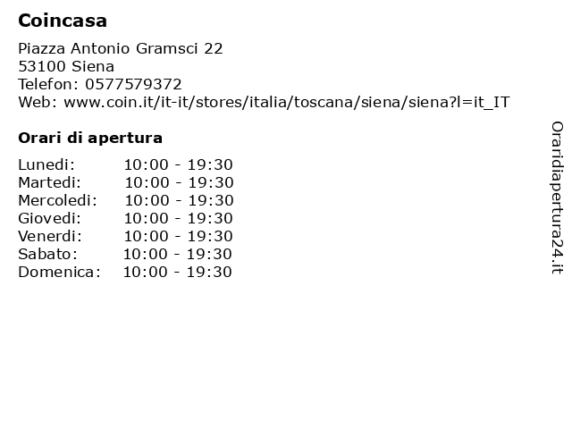 | Sabato | 10:00-19:30 |