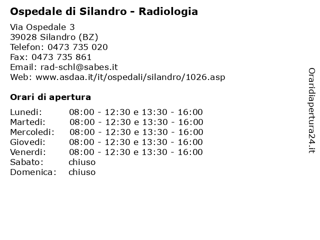 Lunedi | 08:00-12:30 e 13:30-16:00 |