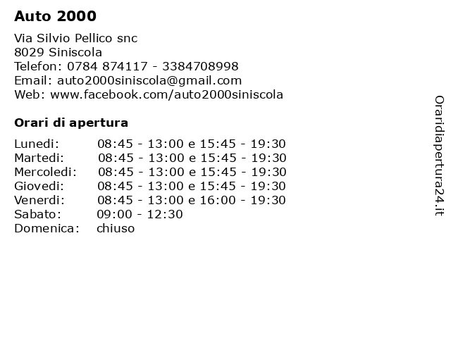 | Lunedi | 08:45-13:00 e 15:45-19:30 |