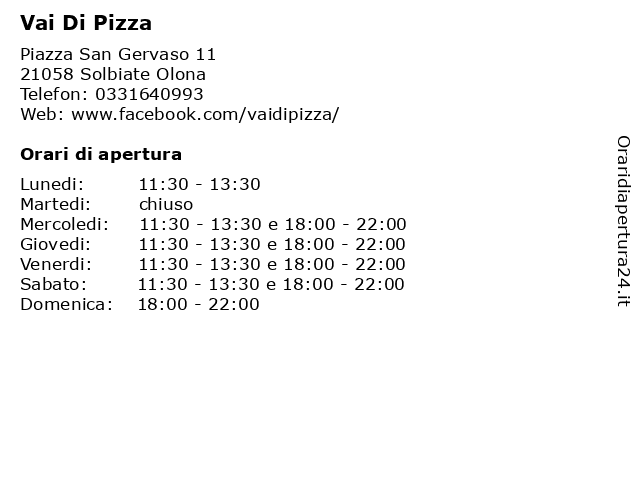 | Mercoledi | 11:30-13:30 e 18:00-22:00 |