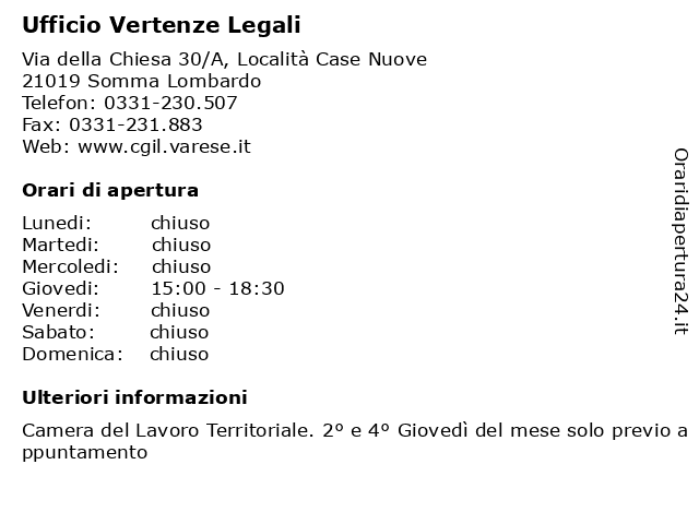 1 Certificazioni Medico Legali - Prenotazioni (distanza: 5,08 km) Via Cavour 2, angolo Via Fuser, 21019 Somma Lombardo ambulatorio, assistenza, certificazioni, cure mediche, legali, medico, prenotazioni, sanità, servizi ai cittadini 2 Certificazioni Medico Legali (distanza: 5,34 km) Via Cavour 21, 21015 Lonate Pozzolo ambulatorio, assistenza, certificazioni, cure mediche, legali, medico, sanità, servizi ai cittadini 3 CGIL UVL Ufficio Vertenze Legali (distanza: 6,51 km) Via del Popolo 1, 21013 Gallarate associazione sindacale, cgil, legali, organizzazione no profit, servizi al cittadino, tutela cittadini, ufficio, uvl, vertenze 4 Certificazioni Medico Legali (distanza: 6,59 km) Corso Leonardo da Vinci 1, 21013 Gallarate ambulatorio, assistenza, certificazioni, cure mediche, legali, medico, sanità, servizi ai cittadini 5 Certificazioni Medico Legali (distanza: 10,61 km) Viale Stelvio 3, 21052 Busto Arsizio ambulatorio, assistenza, certificazioni, cure mediche, legali, medico, sanità, servizi ai cittadini 6 Distretto Sanitario - Visite Medico Legali (distanza: 10,62 km) Viale Stelvio 3, 21052 Busto Arsizio ambulatorio, assistenza, cure mediche, distretto, legali, medico, sanitario, sanità, servizi ai cittadini, visite |