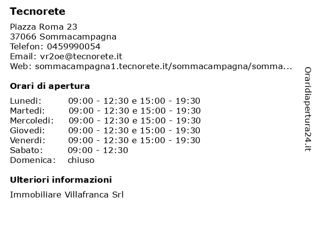 | Lunedi | 09:00-12:30 e 15:00-19:30 |