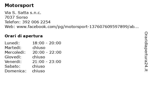 2 AC Tecnocar di Canu Alessandro (distanza: 1,28 km) Via Sennori 76, 07037 Sorso ac, alessandro, auto, canu, di, officina, revisioni, riparazioni, tecnocar 3 i-ReStore (distanza: 2,23 km) Via Roma 125, 07036 Sennori assistenza, i-restore, restore, riparazioni, smartphone 4 Service Trade SpA (distanza: 7,65 km) Via Marongiu 40-42 a, 07100 Sassari assistenza, riparazioni, service, spa, trade 5 Carlauto Service (distanza: 7,84 km) Zona Industriale Predda Niedda 41, 07100 Sassari accessori, assistenza, automobili, carlauto, carrozzeria, macchine, officina, ricambi, riparazioni, service 6 German Car (Vendita - Orario Invernale) (distanza: 7,90 km) Regione Predda Niedda 8, 07100 Sassari (vendita, accessori, automobili, car, carrozzeria, german, invernale), macchine, officina, orario, ricambi, riparazioni |