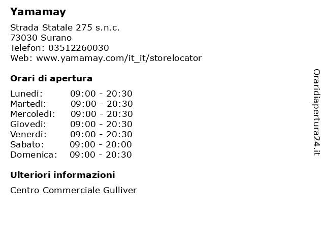 | Giovedi | 09:00-20:30 |