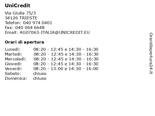 1 Unicredit (distanza: 0,54 km) Via Fabio Severo 152, 34127 Trieste assicurazione per la casa, assicurazione per la persona, banca, bancomat, carta prepagata, conto, creditexpress dynamic, finanziamenti, genius first, genius smart, investimenti, mutui, prestiti personali, super genius 2.0, unicredit, unicreditcard click, unicreditcard flexia classic 2 Unicredit (distanza: 0,69 km) Largo Fulvio Tomizza 1, 34126 Trieste assicurazione per la casa, assicurazione per la persona, banca, bancomat, carta prepagata, conto, creditexpress dynamic, finanziamenti, genius first, genius smart, investimenti, mutui, prestiti personali, super genius 2.0, unicredit, unicreditcard click, unicreditcard flexia classic 3 Unicredit (distanza: 1,39 km) Largo Barriera Vecchia 6, 34129 Trieste (TS) assicurazione per la casa, assicurazione per la persona, banca, bancomat, carta prepagata, conto, creditexpress dynamic, finanziamenti, genius first, genius smart, investimenti, mutui, prestiti personali, super genius 2.0, unicredit, unicreditcard click, unicreditcard flexia classic 4 Unicredit (distanza: 1,55 km) Via Silvio Pellico, 3, 34122 Trieste assicurazione per la casa, assicurazione per la persona, banca, carta prepagata, conto, creditexpress dynamic, finanziamenti, genius first, genius smart, investimenti, mutui, prestiti personali, super genius 2.0, unicredit, unicreditcard click, unicreditcard flexia classic 5 Unicredit (distanza: 1,73 km) P.ZA DELLA LIBERTA' 2, 34132 TRIESTE assicurazione per la casa, assicurazione per la persona, banca, bancomat, carta prepagata, conto, creditexpress dynamic, finanziamenti, genius first, genius smart, investimenti, mutui, prestiti personali, super genius 2.0, unicredit, unicreditcard click, unicreditcard flexia classic 6 Unicredit (distanza: 1,88 km) Via della Cassa di Risparmio 10, 34121 Trieste assicurazione per la casa, assicurazione per la persona, banca, bancomat, carta prepagata, conto, creditexpress dynamic, finanziamenti, genius first, genius smart, investimenti, mutui, prestiti personali, super genius 2.0, unicredit, unicreditcard click, unicreditcard flexia classic |