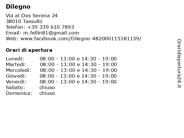 | Lunedi | 08:00-13:00 e 14:30-19:00 |