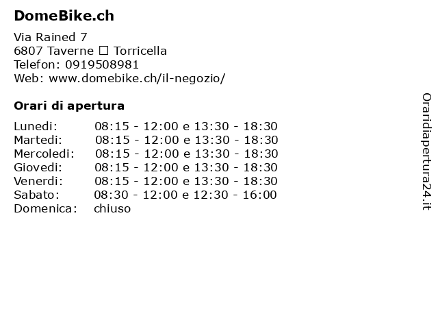Lunedi | 08:15-12:00 e 13:30-18:30 |