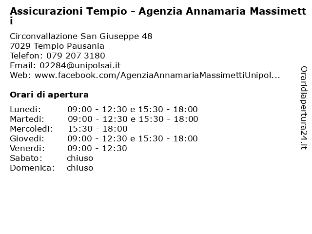 | Lunedi | 09:00-12:30 e 15:30-18:00 |