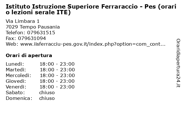 1 Istituto Istruzione Superiore Ferraraccio - Pes (Segreteria del personale) (distanza: 0,00 km) Via Limbara 1, 07029 Tempo Pausania (segreteria, del, ferraraccio, istituti, istituto, istruzione, personale), pes, scuole, superiore 2 Istituto Istruzione Superiore Ferraraccio - Pes (Segreteria amministrativa) (distanza: 0,00 km) Via Limbara 1, 07029 Tempo Pausania (segreteria, amministrativa), ferraraccio, istituti, istituto, istruzione, pes, scuole, superiore 3 Istituto Istruzione Superiore Ferraraccio - Pes (orario lezioni ITCG) (distanza: 0,00 km) Via Limbara 1, 07029 Tempo Pausania (orario, ferraraccio, istituti, istituto, istruzione, itcg), lezioni, pes, scuole, superiore 4 Istituto Istruzione Superiore Ferraraccio - Pes (orario lezioni serale ITCG) (distanza: 0,00 km) Via Limbara 1, 07029 Tempo Pausania (orario, ferraraccio, istituti, istituto, istruzione, itcg), lezioni, pes, scuole, serale, superiore 5 Istituto Istruzione Superiore Ferraraccio - Pes (orario lezioni serale ITI) (distanza: 0,00 km) Via Limbara 1, 07029 Tempo Pausania (orario, ferraraccio, istituti, istituto, istruzione, iti), lezioni, pes, scuole, serale, superiore 6 Istituto Istruzione Superiore Ferraraccio - Pes (orario lezioni diurne ITI) (distanza: 0,00 km) Via Limbara 1, 07029 Tempo Pausania (orario, diurne, ferraraccio, istituti, istituto, istruzione, iti), lezioni, pes, scuole, superiore |