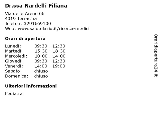 1 Ambulatorio Veterinario Dr. Nardelli Bellomo (distanza: 34,88 km) Strada Lentisco 39, 04100 Latina ambulatorio, animali, bellomo, chirurgia generale, dr., medicina generale, nardelli, sanità, servizi, veterinari, veterinario 2 Di Fiore & Nardelli Snc Di Di Fiore a. e Nardelli m. (distanza: 53,50 km) Via Di Biasio Gaetano 144, 03043 Cassino bar, birrerie, fiore, nardelli, paninoteche 3 Dr.ssa Barboni Maurizia (distanza: 0,01 km) Via delle Arene 66, 04019 Terracina (LT) ambulatori, barboni, circoscrizione, dottore, dr.ssa, guarigione, maurizia, medico di base, medico di famiglia, pediatra, studi, visita 4 Dr. Serena Antonio (distanza: 0,19 km) Via E. Giansanti 20, 04019 Terracina (LT) ambulatori, analisi, antonio, cura della persona, cure, dr., medici, medicina, sanità, serena, visite mediche 5 Dott. Licorni Mauro (distanza: 0,19 km) Via De Amicis 4, 04019 Terracina ambulatori, analisi, cura della persona, cure, dott., licorni, mauro, medici, medicina, sanità, visite mediche 6 Dott.ssa Venturi Antonella (distanza: 0,32 km) Piazza Bruno Buozzi 7/A, 04019 Terracina (LT) ambulatori, analisi, antonella, cura della persona, cure, dott.ssa, medici, medicina, sanità, venturi, visite mediche |