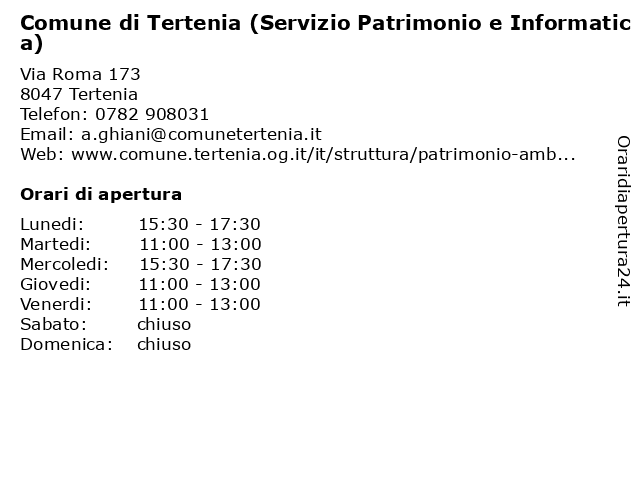 Tag di ricerca per Comune di Tertenia (Servizio Patrimonio e Informatica):comune, pubblici, (servizio, patrimonio, ambiente, lavori, manutenzioni), informatica), tertenia, tertenia comune, uffici comunali tertenia |