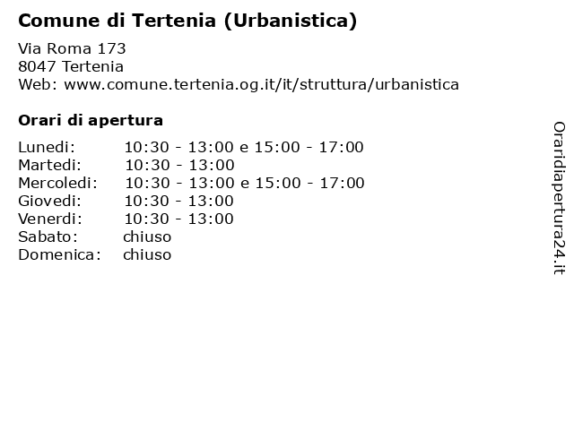 | Mercoledi | 10:30-13:00 e 15:00-17:00 |
