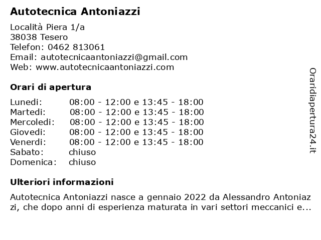 Martedi | 08:00-12:00 e 13:45-18:00 |