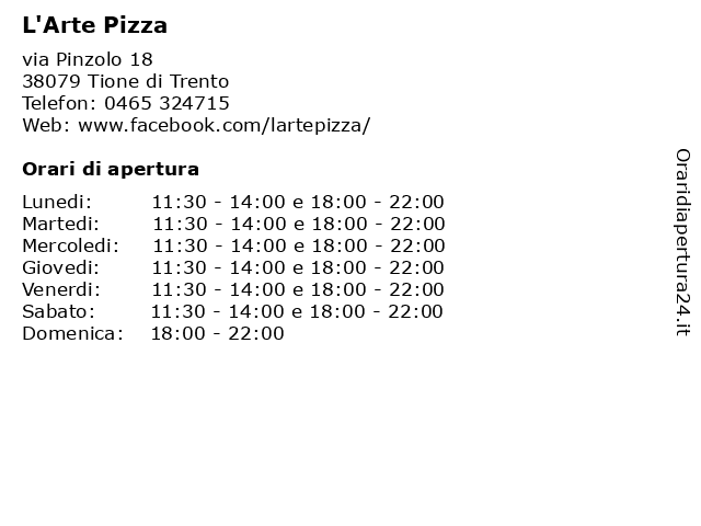 | Lunedi | 11:30-14:00 e 18:00-22:00 |