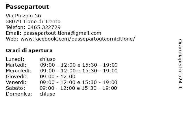 | Sabato | 09:00-12:00 e 15:30-19:00 |