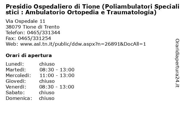 Tag di ricerca per Presidio Ospedaliero di Tione (Poliambulatori Specialistici : Ambulatorio Ortopedia e Traumatologia):di, ortopedia, ambulatorio, ospedale, presidio, ospedaliero, tione, azienda ospedaliera, specialistici, traumatologia), direzione di ospedale, direzione medica, (poliambulatori |