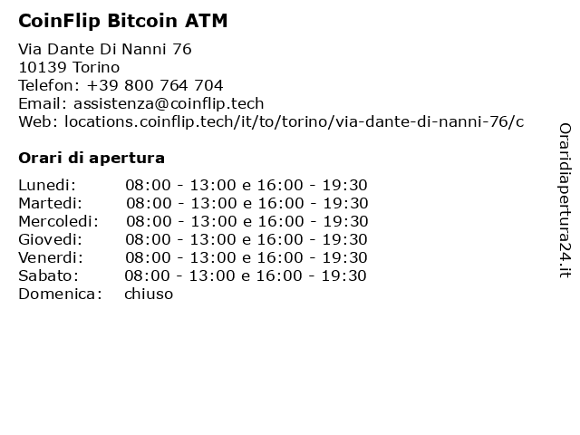 | Sabato | 08:00-13:00 e 16:00-19:30 |
