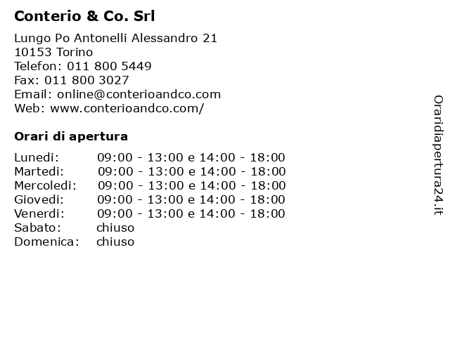 | Lunedi | 09:00-13:00 e 14:00-18:00 |