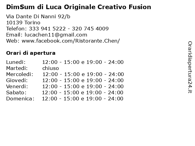 | Lunedi | 12:00-15:00 e 19:00-24:00 |